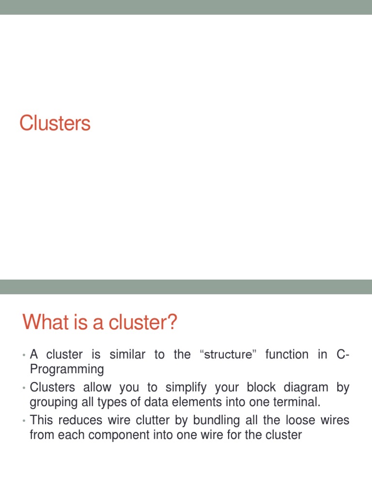 • Insert a Cluster on the Front Panel and Resize it to fit