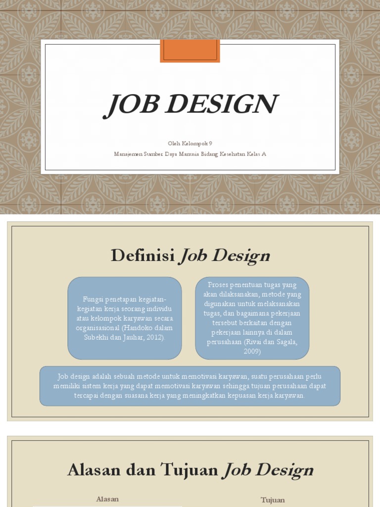 Job design adalah sebuah metode untuk memotivasi karyawan, suatu perusahaan perlu