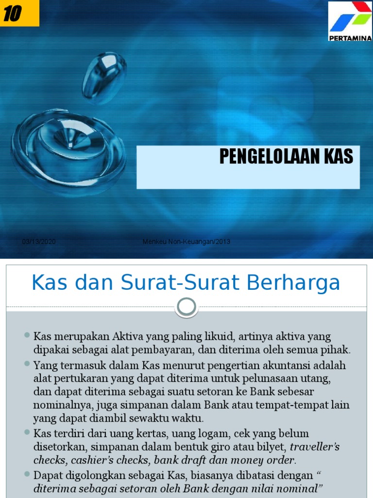 Dapat digolongkan sebagai Kas, biasanya dibatasi dengan “