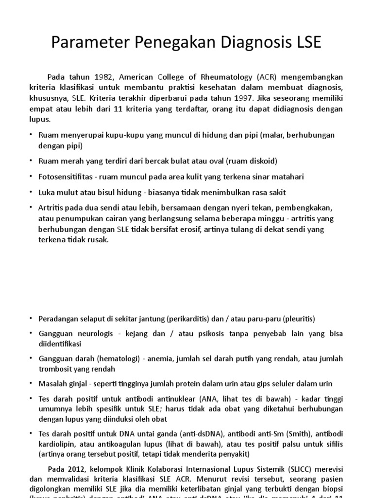 khususnya, SLE. Kriteria terakhir diperbarui pada tahun 1997. Jika seseorang memiliki