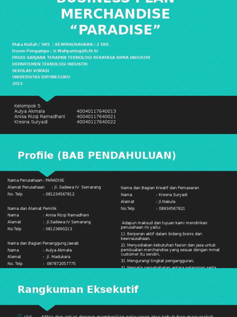 Dari pendirian usaha ini (PARADISE), kami dapat menyimpulkan bahwa berdirinya