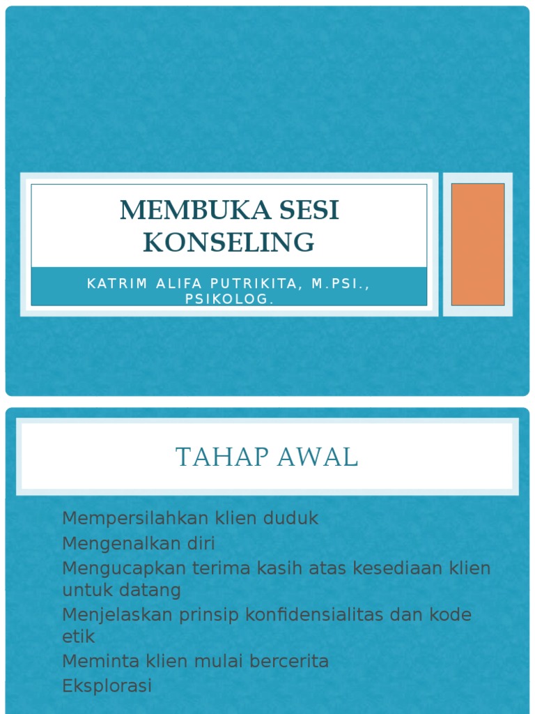 • Pada awal konseling, konselor mempersilahkan