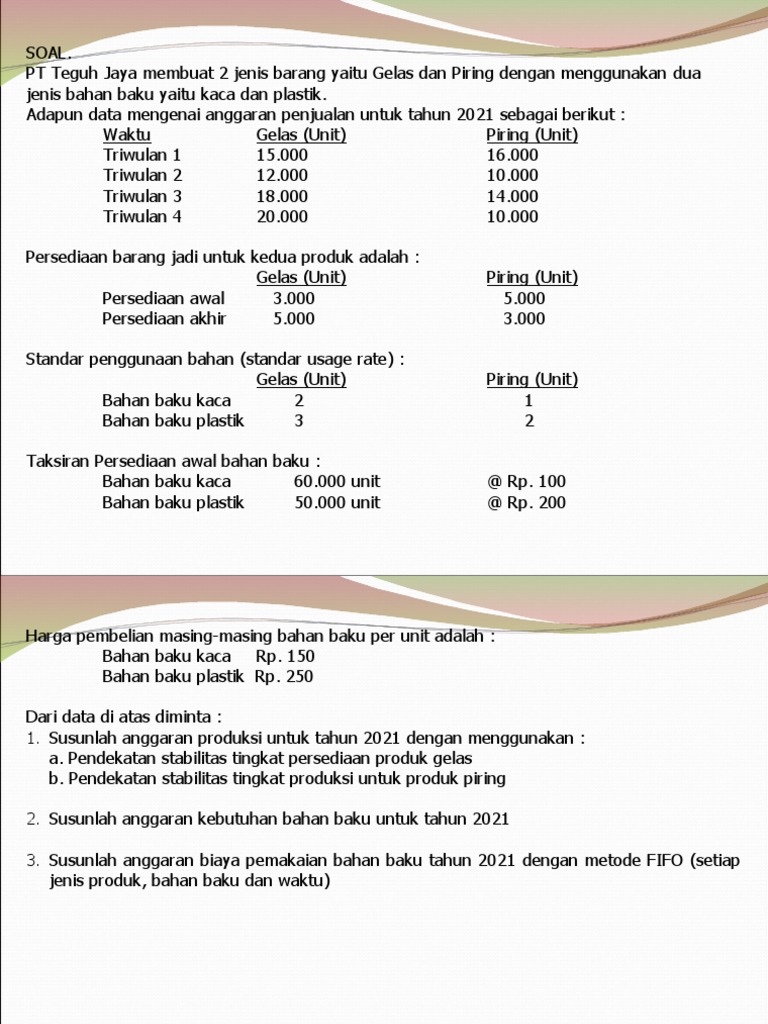 1. Susunlah anggaran produksi untuk tahun 2021 dengan menggunakan :