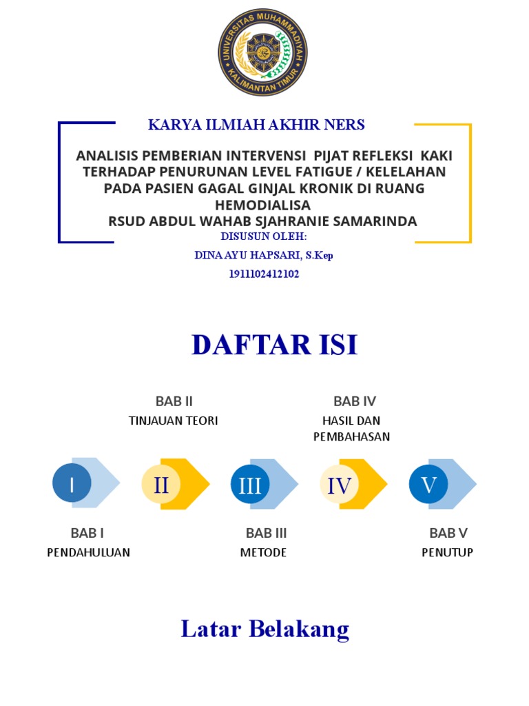 kelelahan pada pasien Gagal Ginjal Kronik. kronik dan sebagai bahan bacaan di perpustakaan Universitas