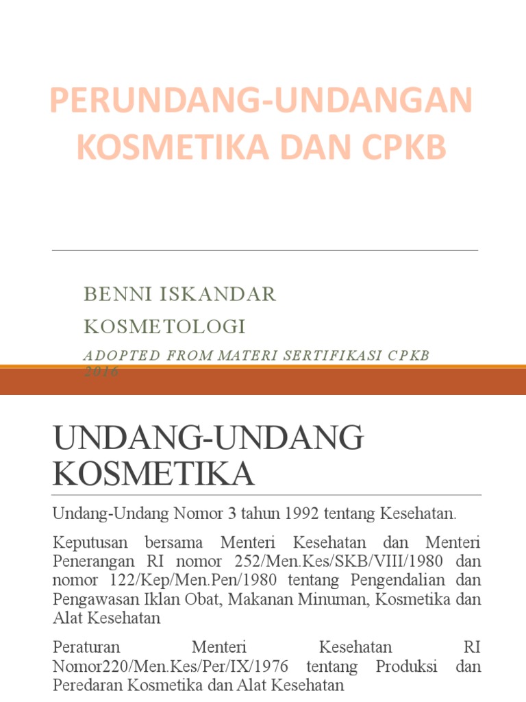 •Pasal 2 ayat 1c : Kosmetika yang diedarkan di wilayah