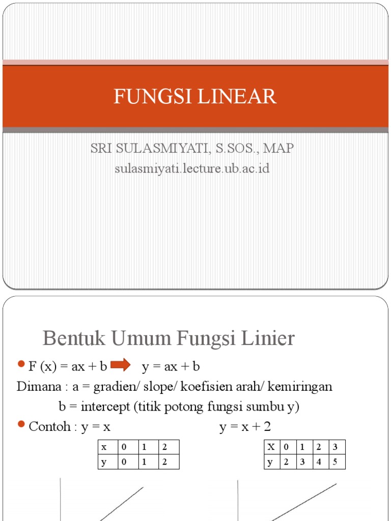 Dimana : a = gradien/ slope/ koefisien arah/ kemiringan