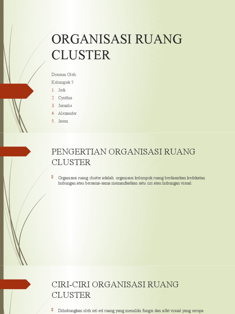 Organisasi ruang cluster adalah organisasi kelompok ruang berdasarkan kedekatan