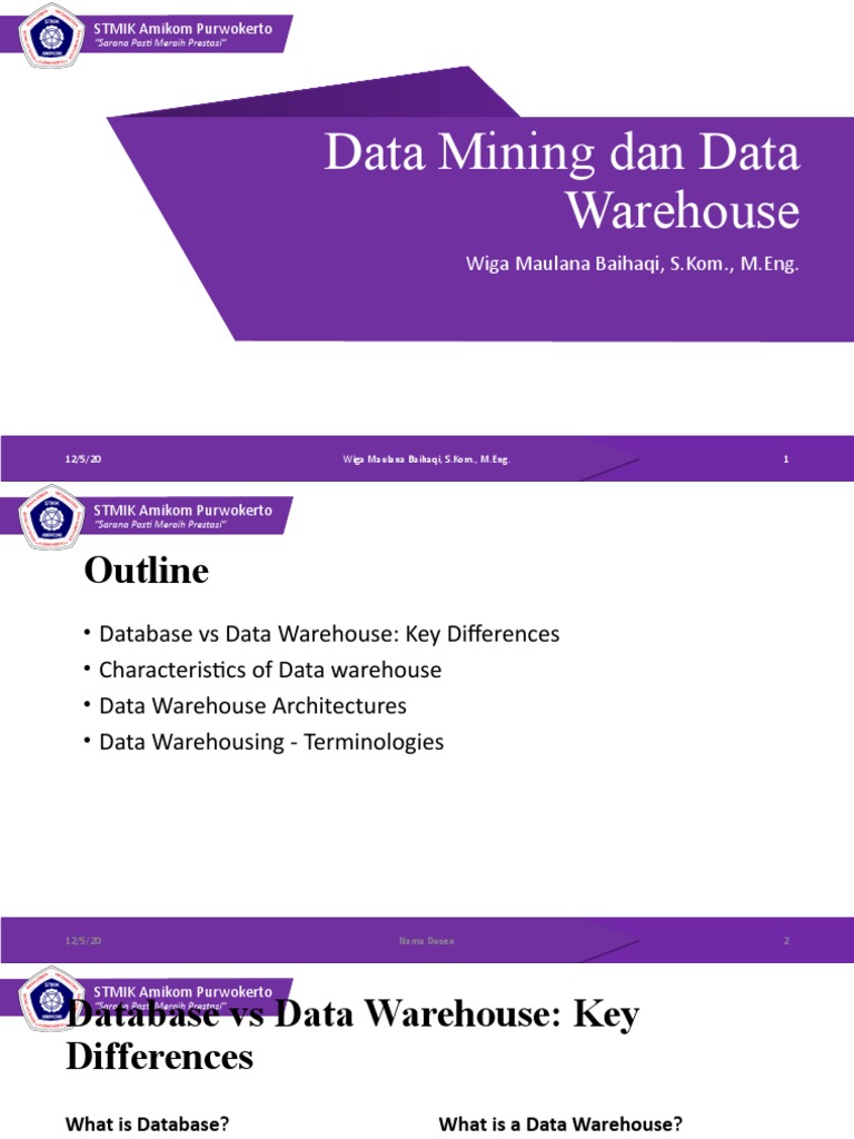 • Database adalah kumpulan data • Gudang data adalah sistem informasi yang