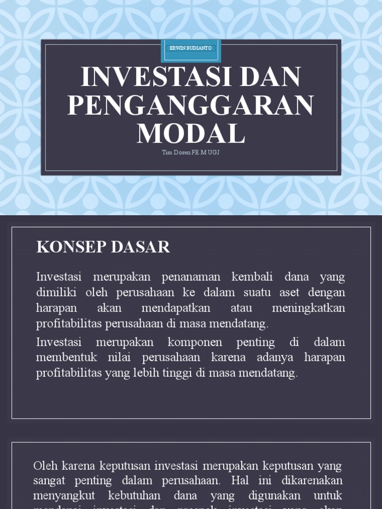 proyek investasi dan mempertimbangkan nilai waktu uang.