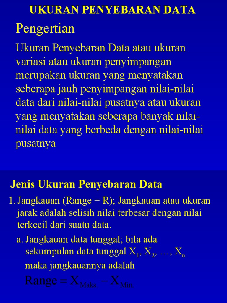 1. Jangkauan (Range = R); Jangkauan atau ukuran