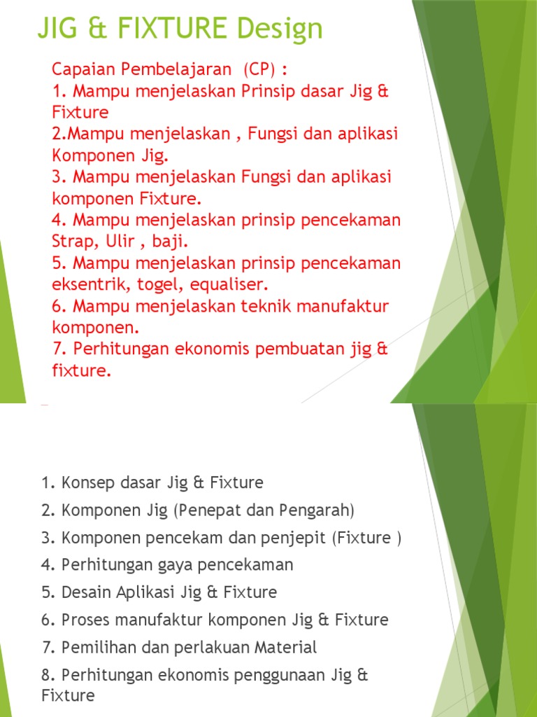 1. Mampu menjelaskan Prinsip dasar Jig &