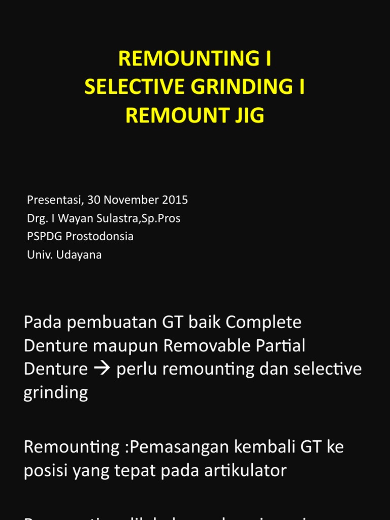 • Penilaian kembali gigi tiruan : tunjukan dan