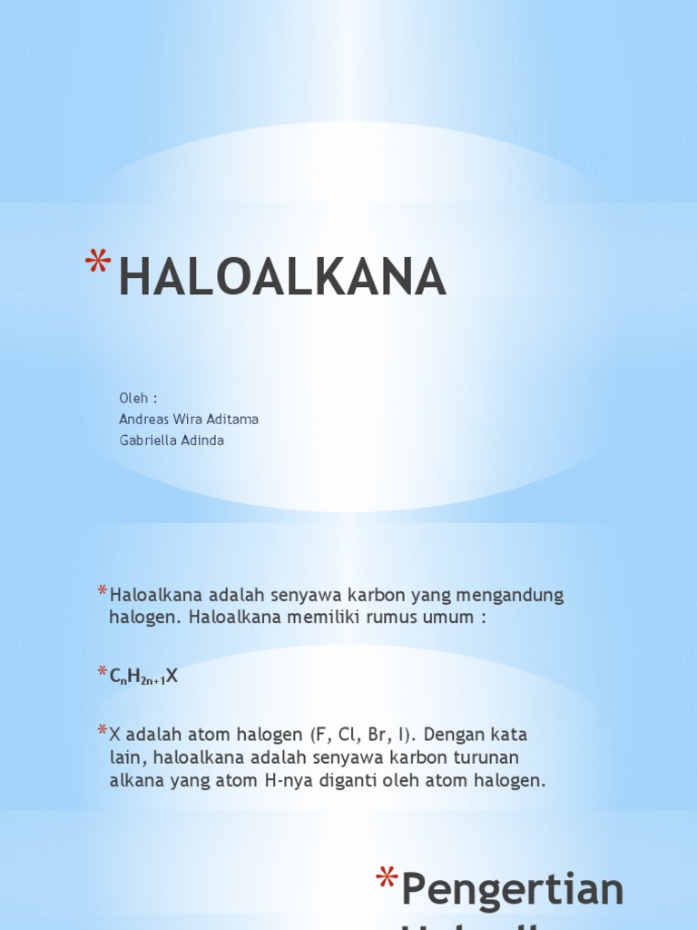 * X adalah atom halogen (F, Cl, Br, I). Dengan kata