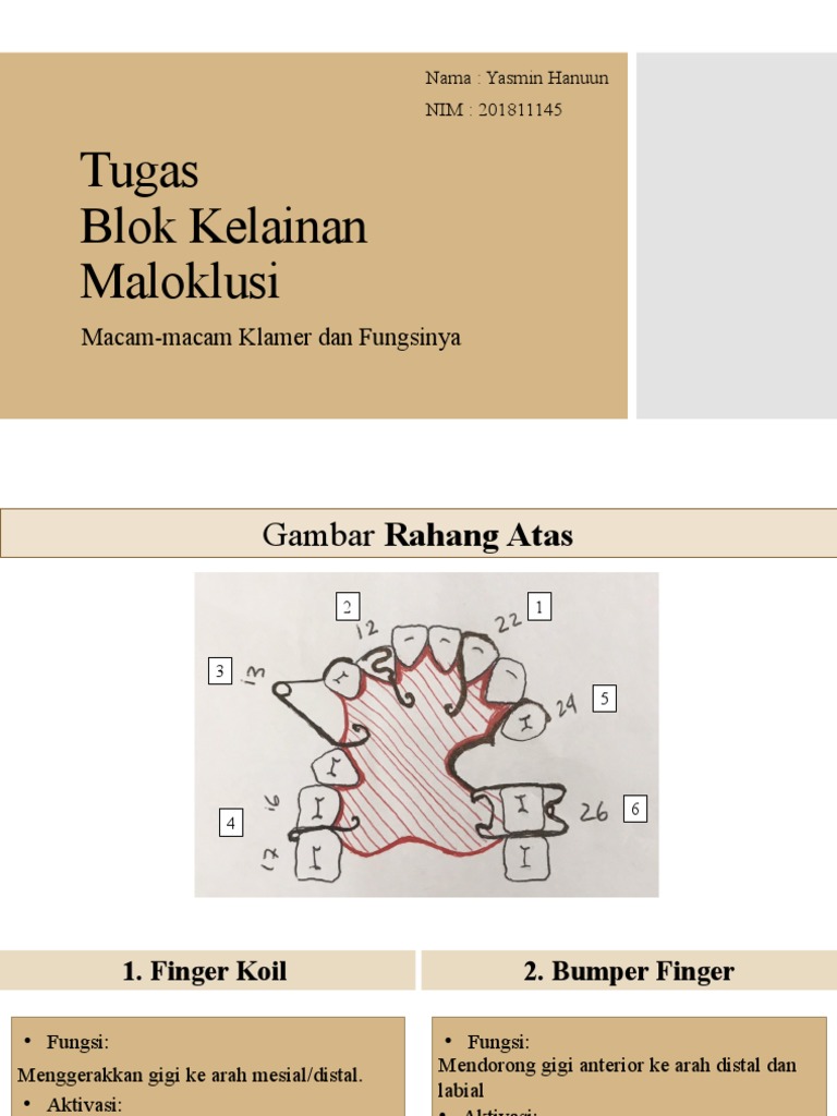 Mendorong gigi ke arah labial. Mendorong dua anterior gigi ke arah labial