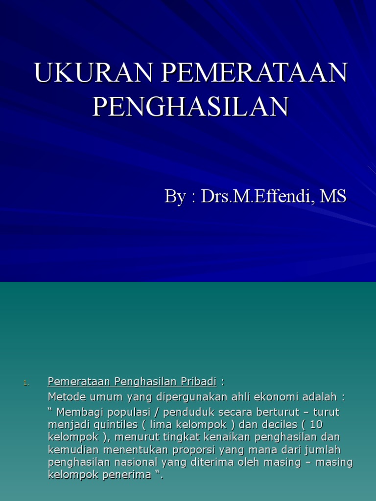 • Menurut Meier : Distribusi Pendapatan adalah Cerminan pemerataan