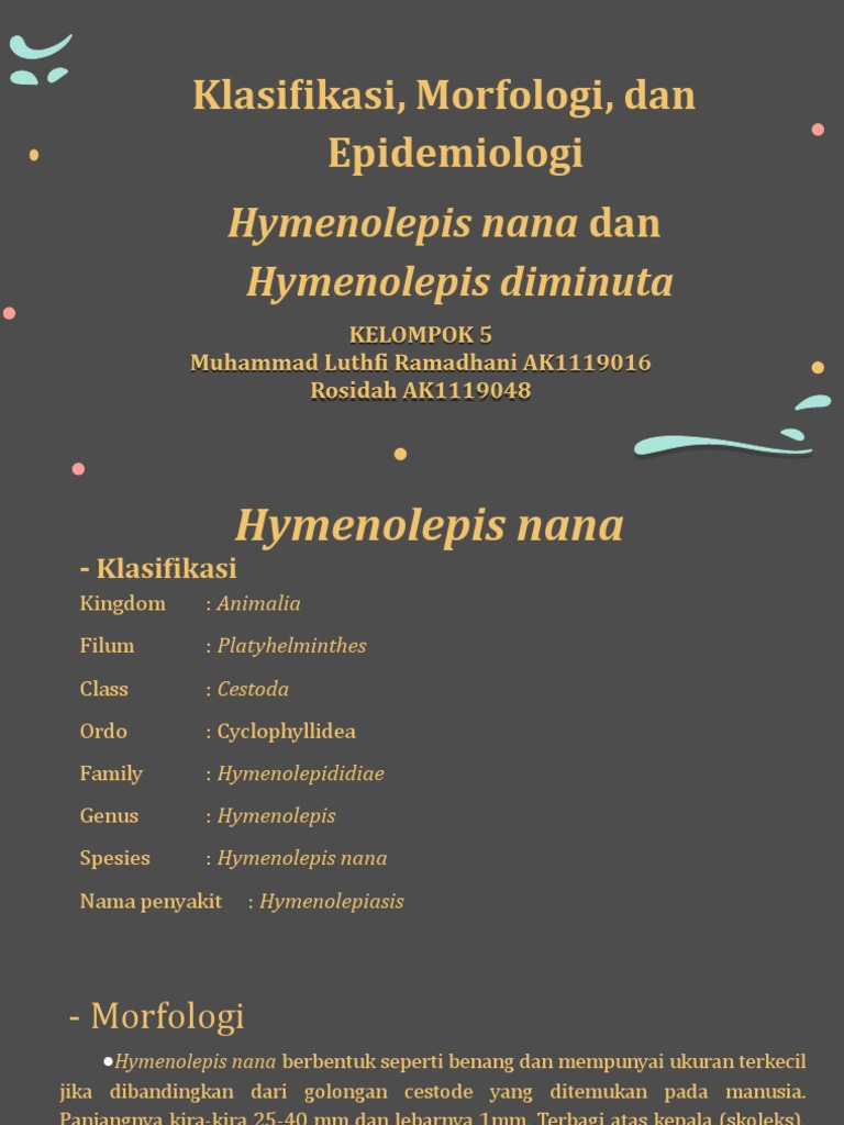● Telur Hymenolepis diminuta ● Cacing Hymenolepis diminuta