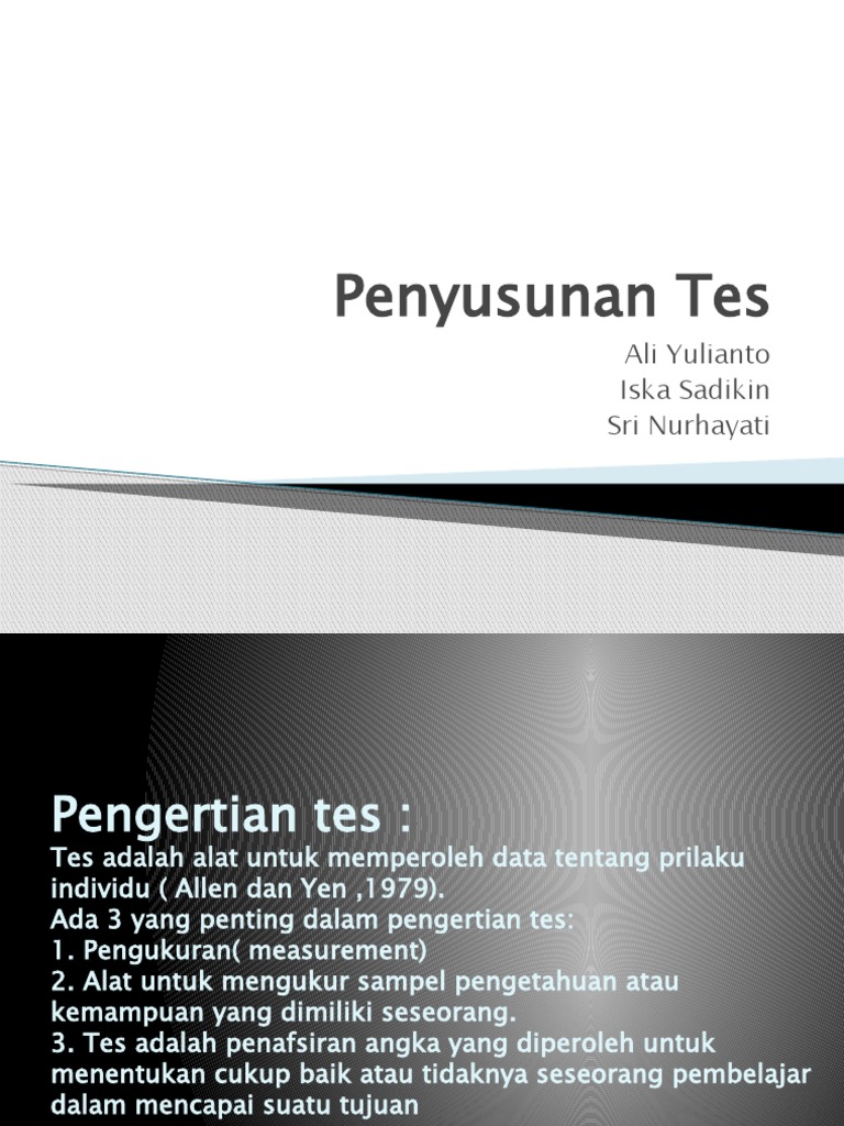 Ada 3 yang penting dalam pengertian tes: