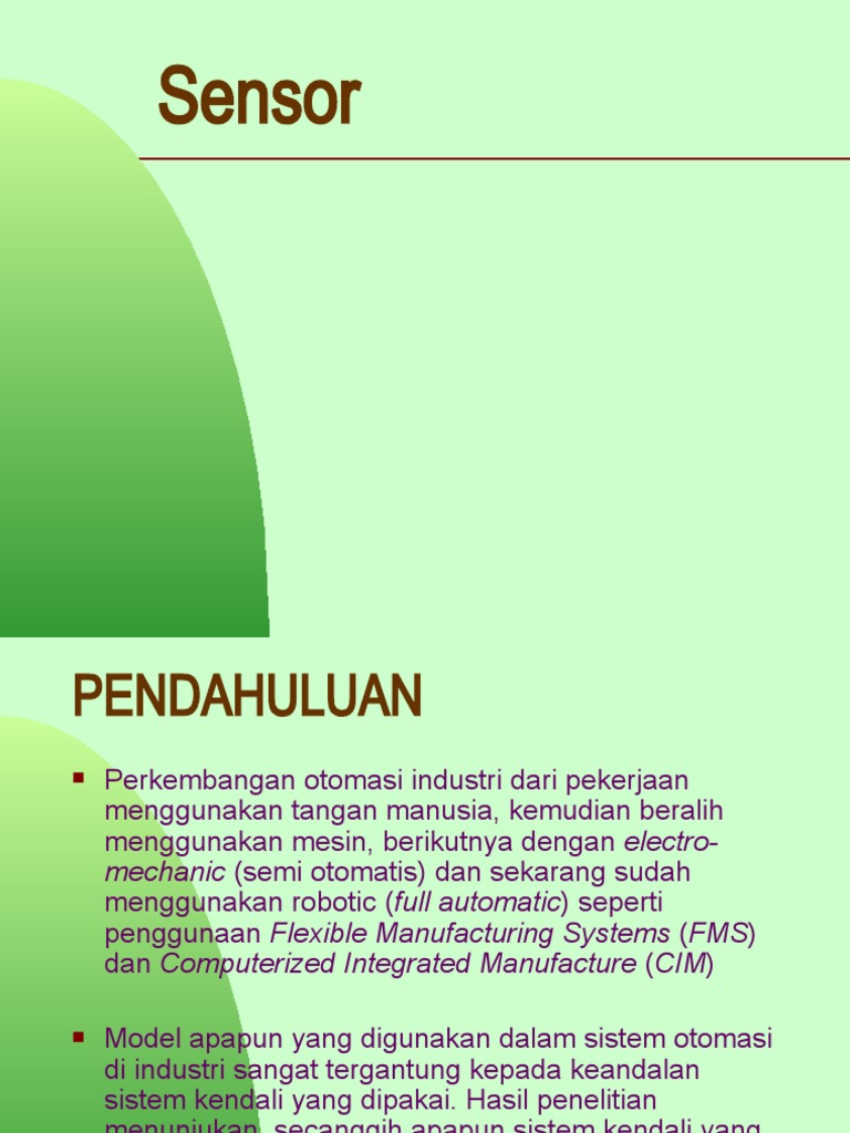 Sensor ON/OFF : meliputi senssor proximity (kapasitip, induktif