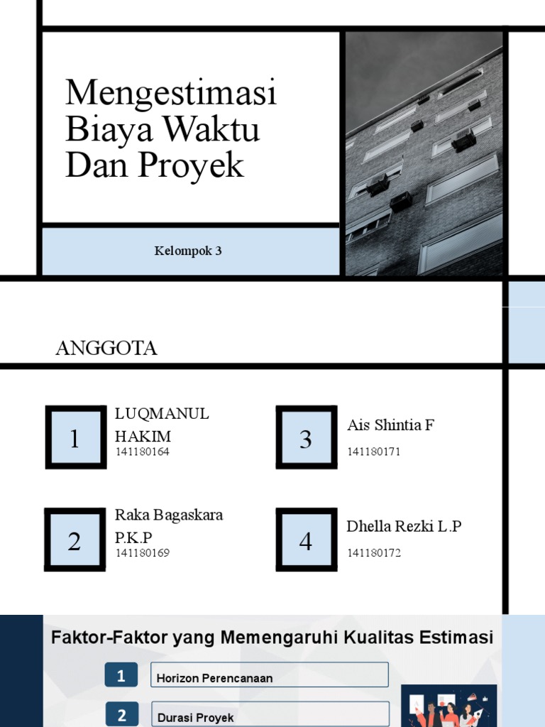 ESTIMASI untuk menentukan durasi total biaya proyek.