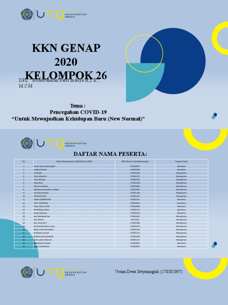 No Nama Mahasiswa/wi UMG (Peserta KKN) NIM (Nomor IndukMahasiswa) Program Studi