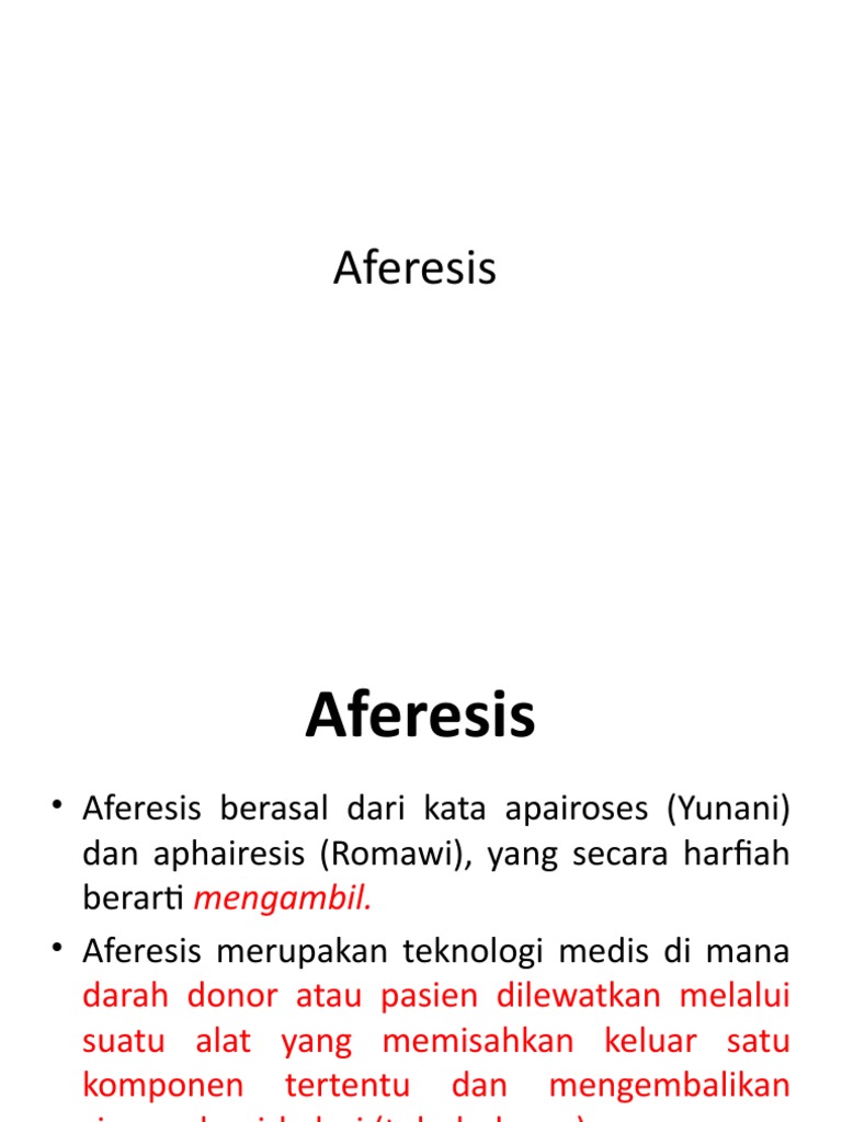 • 4) Plasmaferesis yaitu proses apheresis untuk