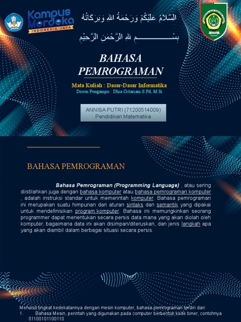 diistilahkan juga dengan bahasa komputer atau bahasa pemrograman komputer