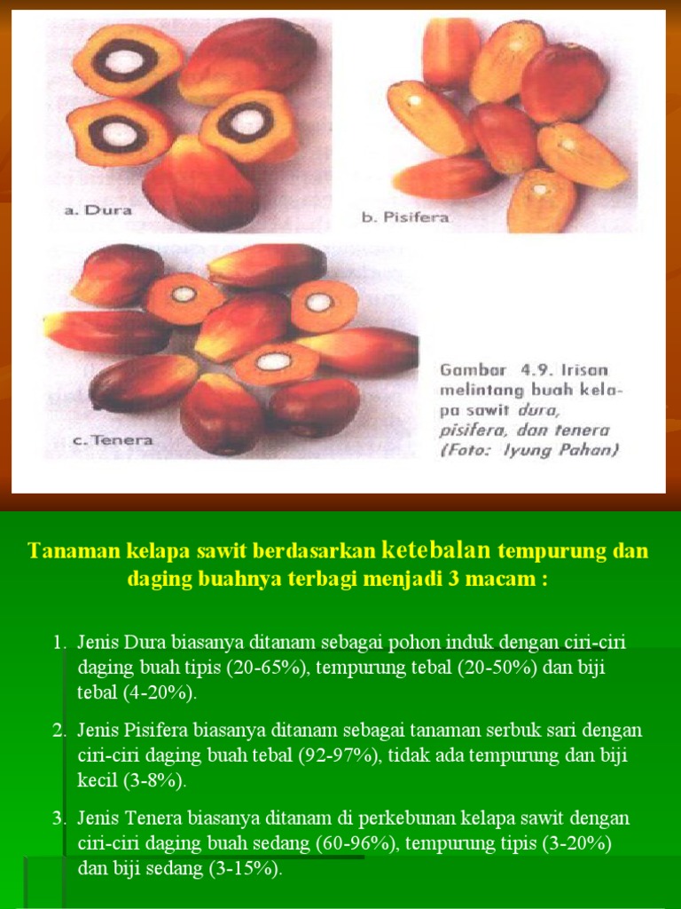 Tanaman kelapa sawit berdasarkan ketebalan tempurung dan