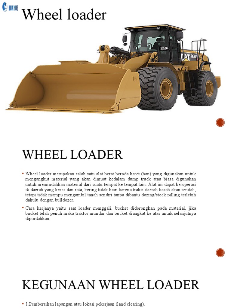 Wheel loader merupakan salah satu alat berat beroda karet (ban) yang digunakan untuk