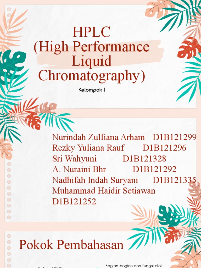 atas campuran yang sangat rumit dan oleh karena itu HPLC berguna untuk