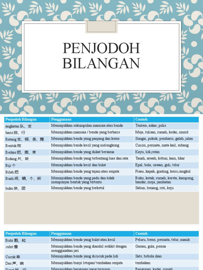 Patah 个 Menunjukkan kata/perkataan Perkataan, kata