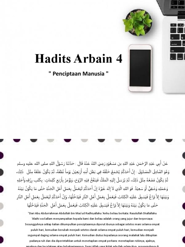 "Dari Abu Abdurrahman Abdullah bin Mas’ud Radhiyallahu ‘Anhu beliau berkata: Rasulullah Shallallahu