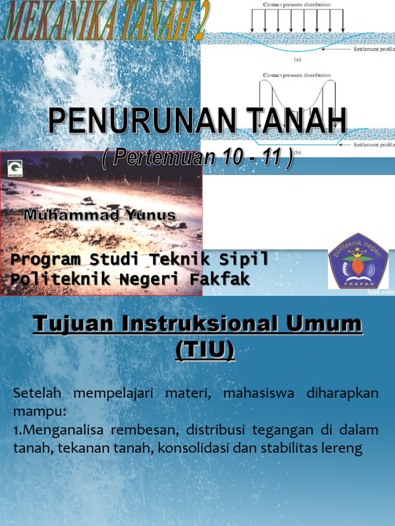 Terjadinya penurunan pada tanah, tidak terlepas dari
