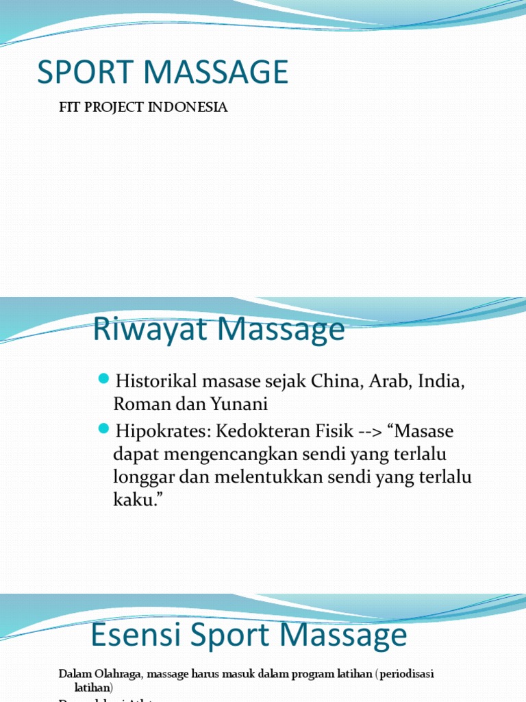 Dalam Olahraga, massage harus masuk dalam program latihan (periodisasi
