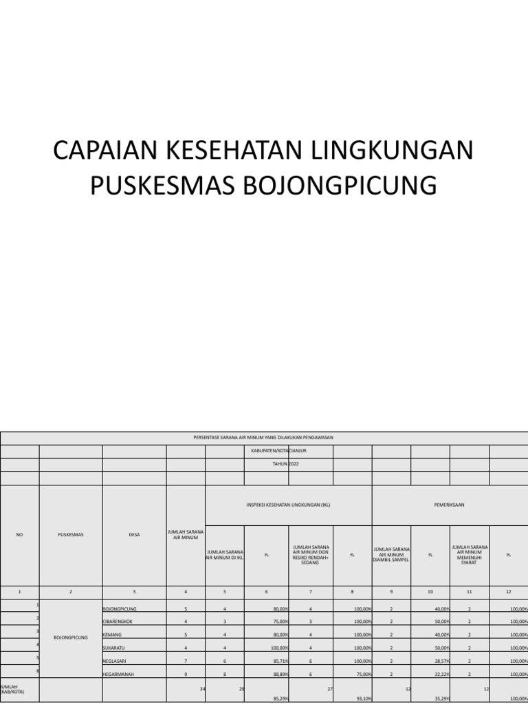 PERSENTASE SPAL MENURUT KECAMATAN DAN PUSKESMAS BOJONGPICUNG