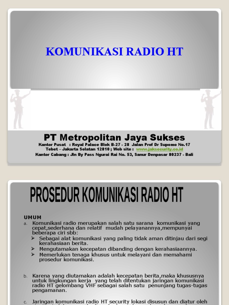 Maksud dan tujuan prosedur komunikasi radio HT ini adalah untuk