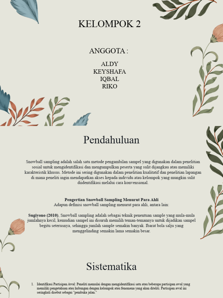 begitu seterusnya, sehingga jumlah sample semakin banyak. Ibarat bola salju yang