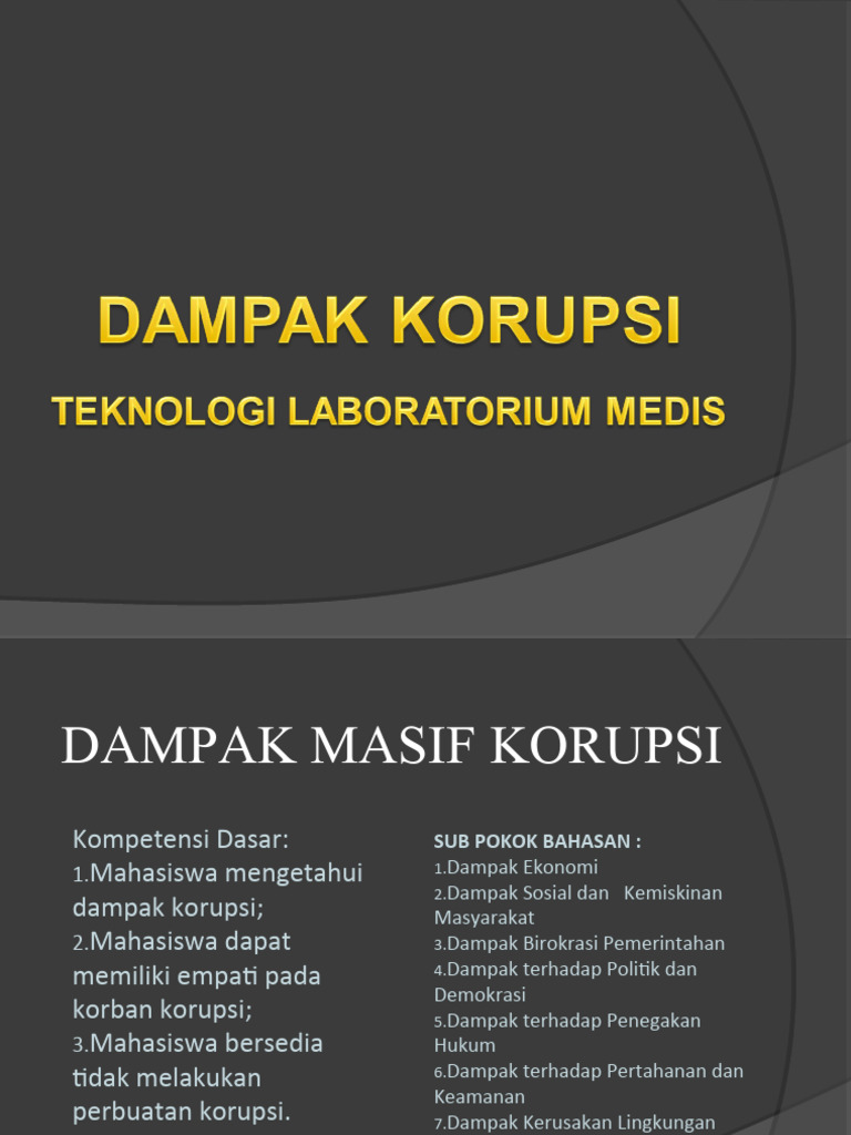 perbuatan korupsi. 7.Dampak Kerusakan Lingkungan