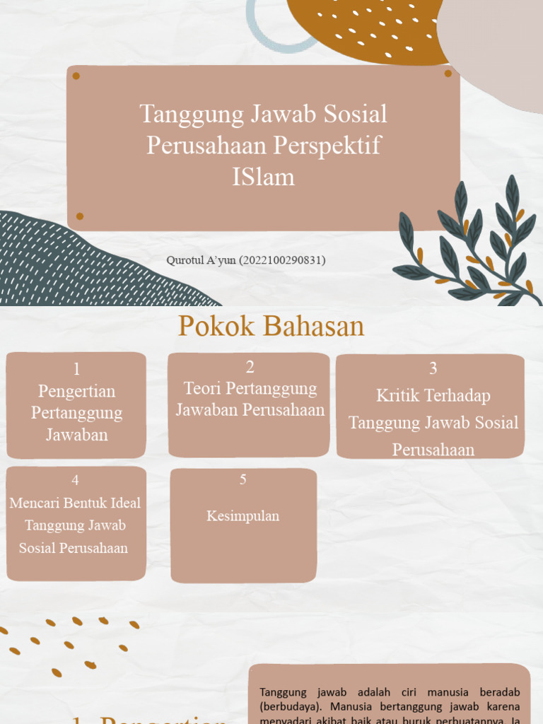 hidup sesuai Islam, termasuk social responsibility, disebut