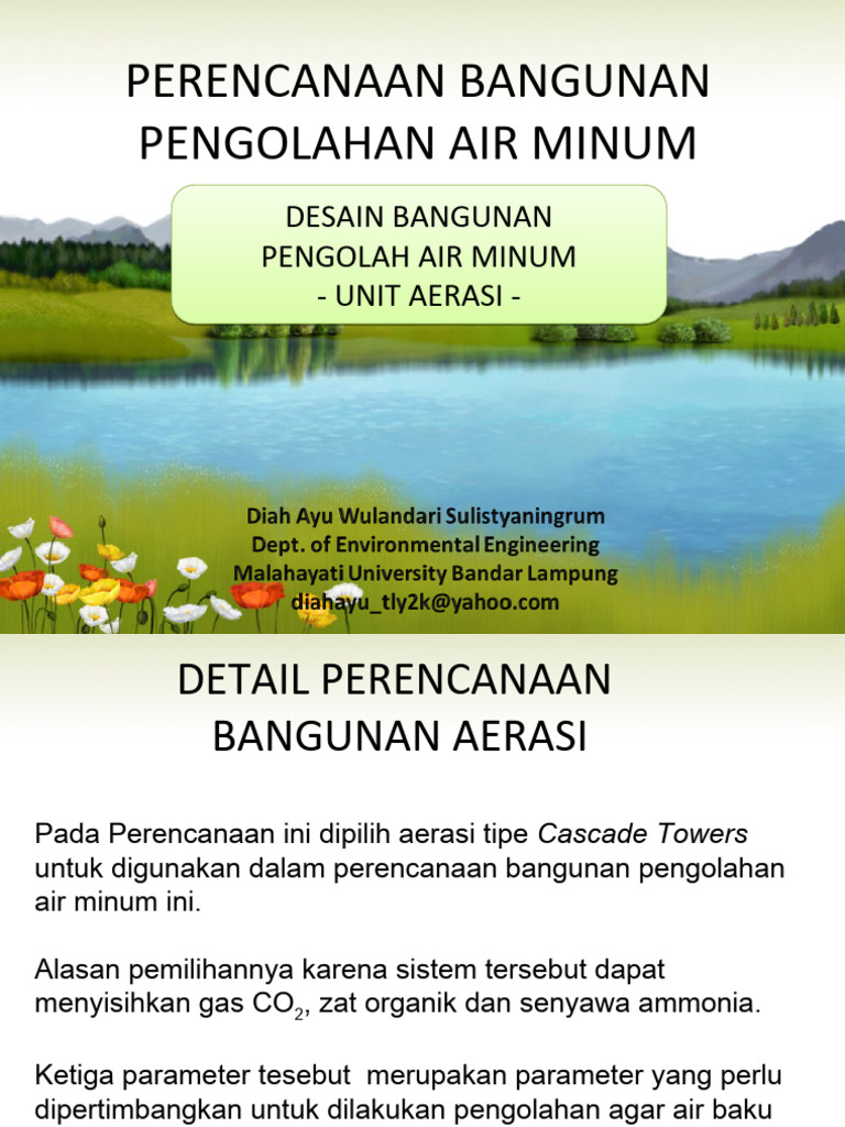 Pada Perencanaan ini dipilih aerasi tipe Cascade Towers