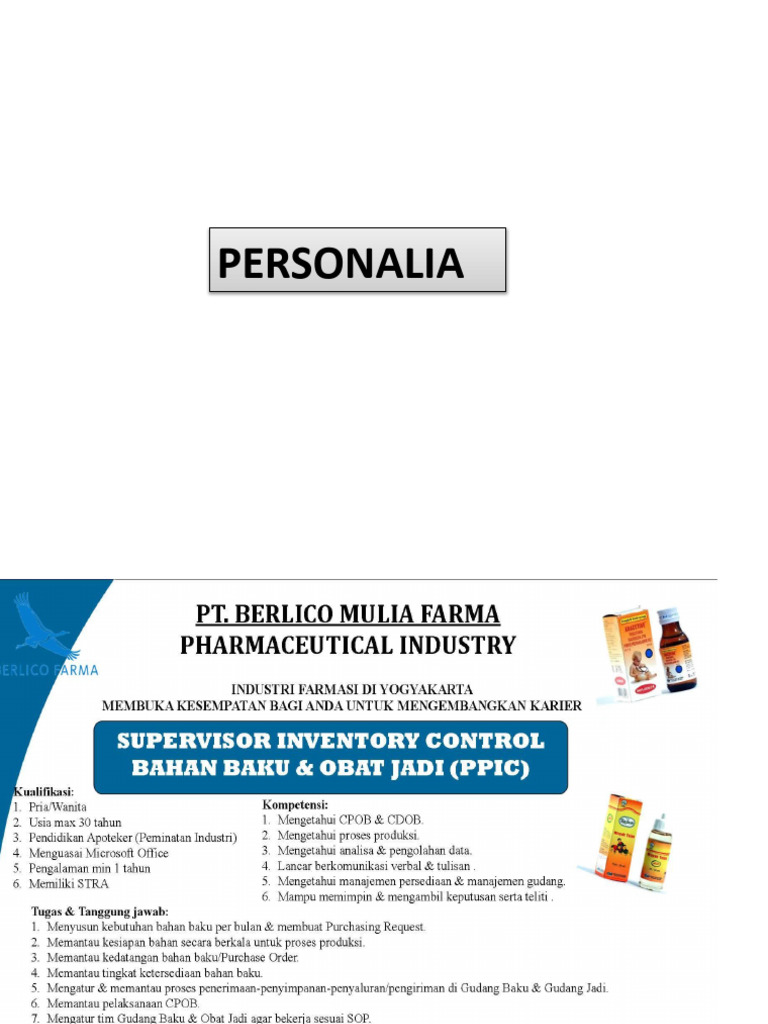 pembuatan obat, CPOB, penguasaan bhs. Inggris yang baik dan ketrampilan