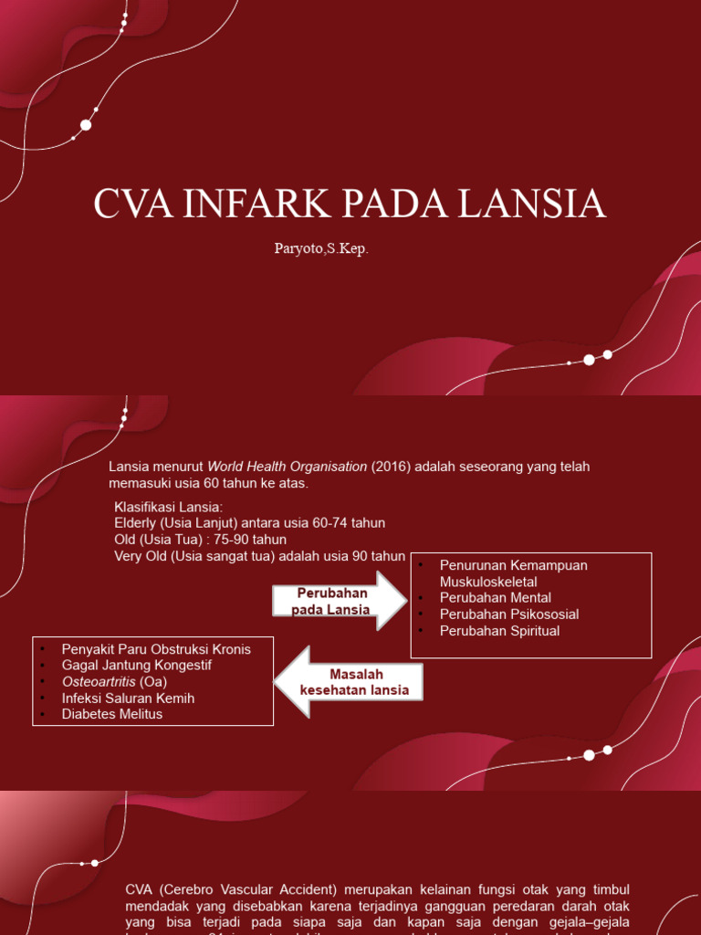 CVA (Cerebro Vascular Accident) merupakan kelainan fungsi otak yang timbul