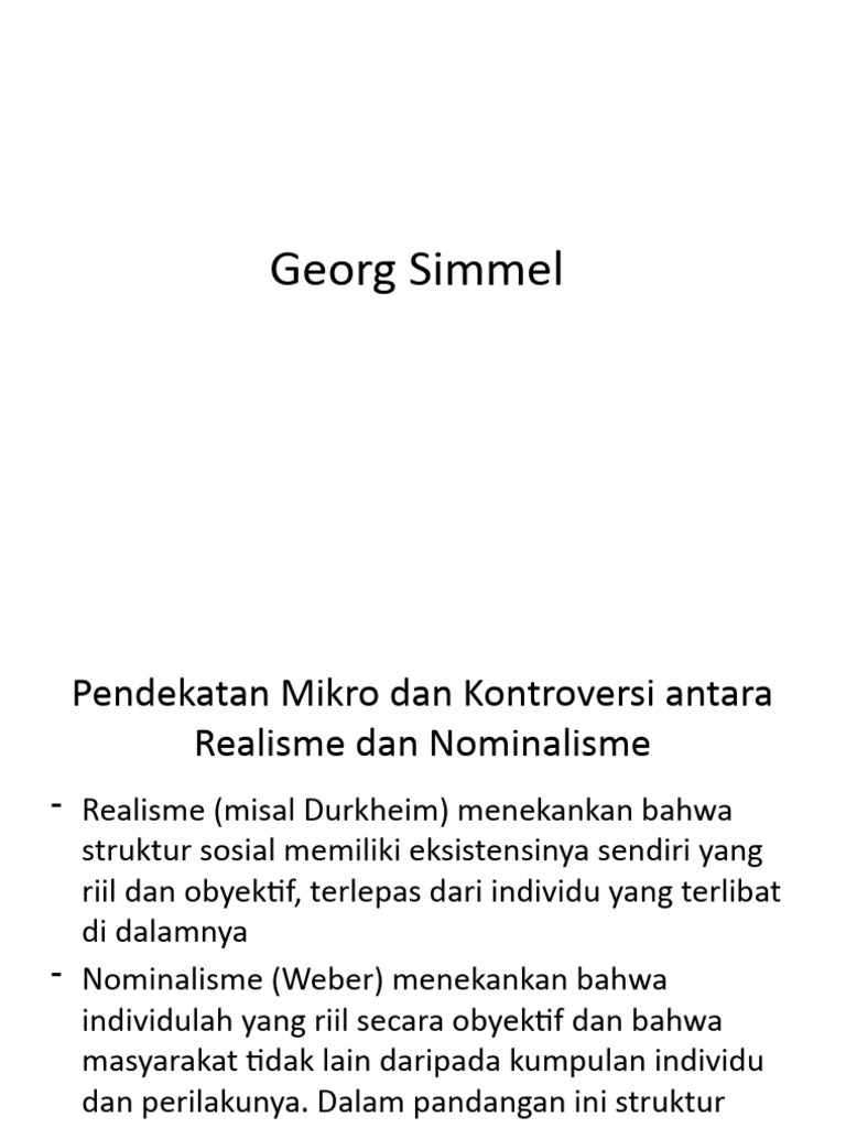 • Simmel menyajikan sejumlah sketsa sosiologis