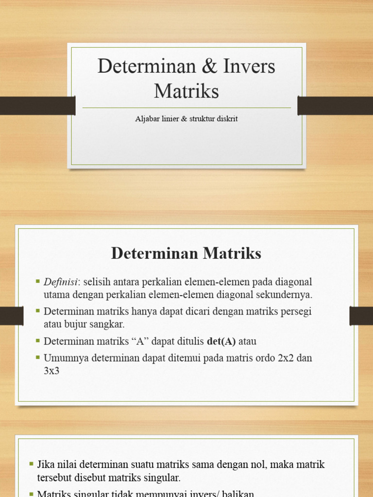Jika nilai determinan suatu matriks sama dengan nol, maka matrik