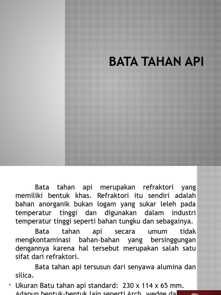 Bata tahan api merupakan refraktori yang