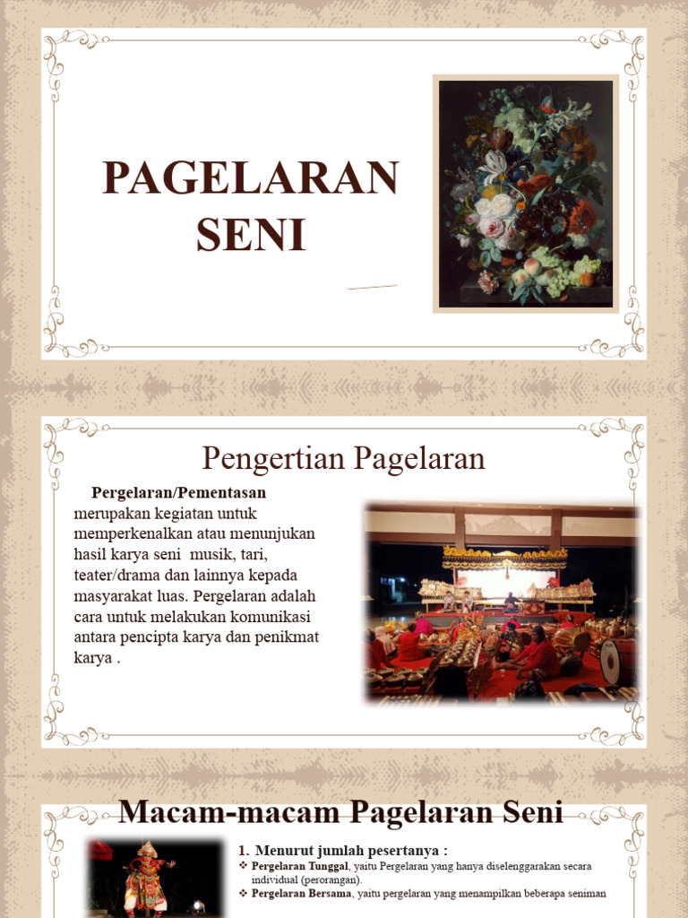 Pergelaran Bersama, yaitu pergelaran yang menampilkan beberapa seniman