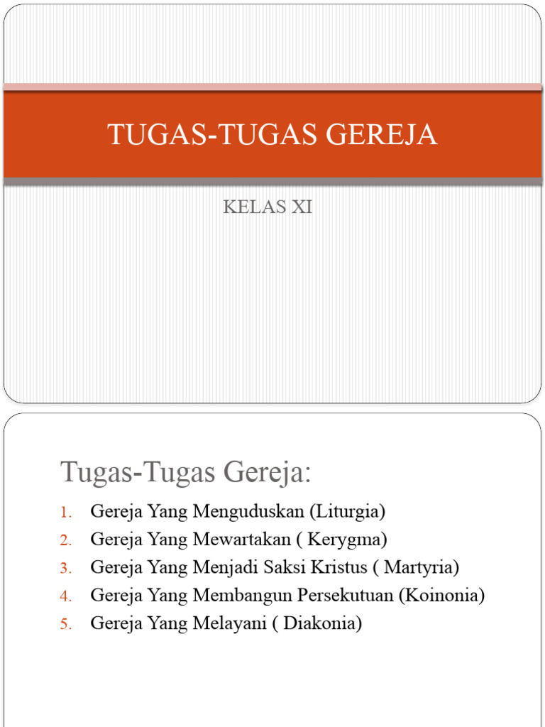 Menjelaskan bentuk-bentuk tugas atau tindakan Gereja