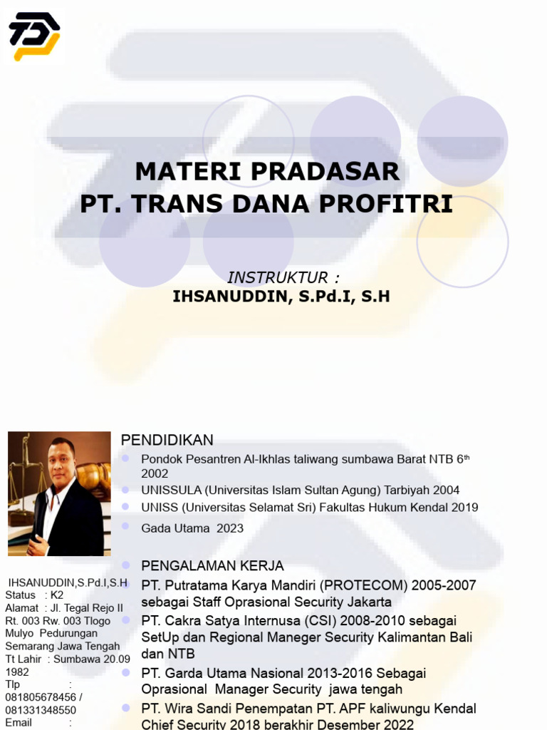 Tinggi :175 PT. Trans Dana Profitri Sebagi Meneger Oprasional