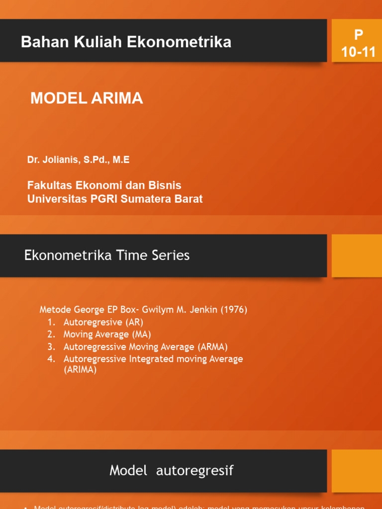 • Model autoregressive integrated moving average (ARIMA): adalah