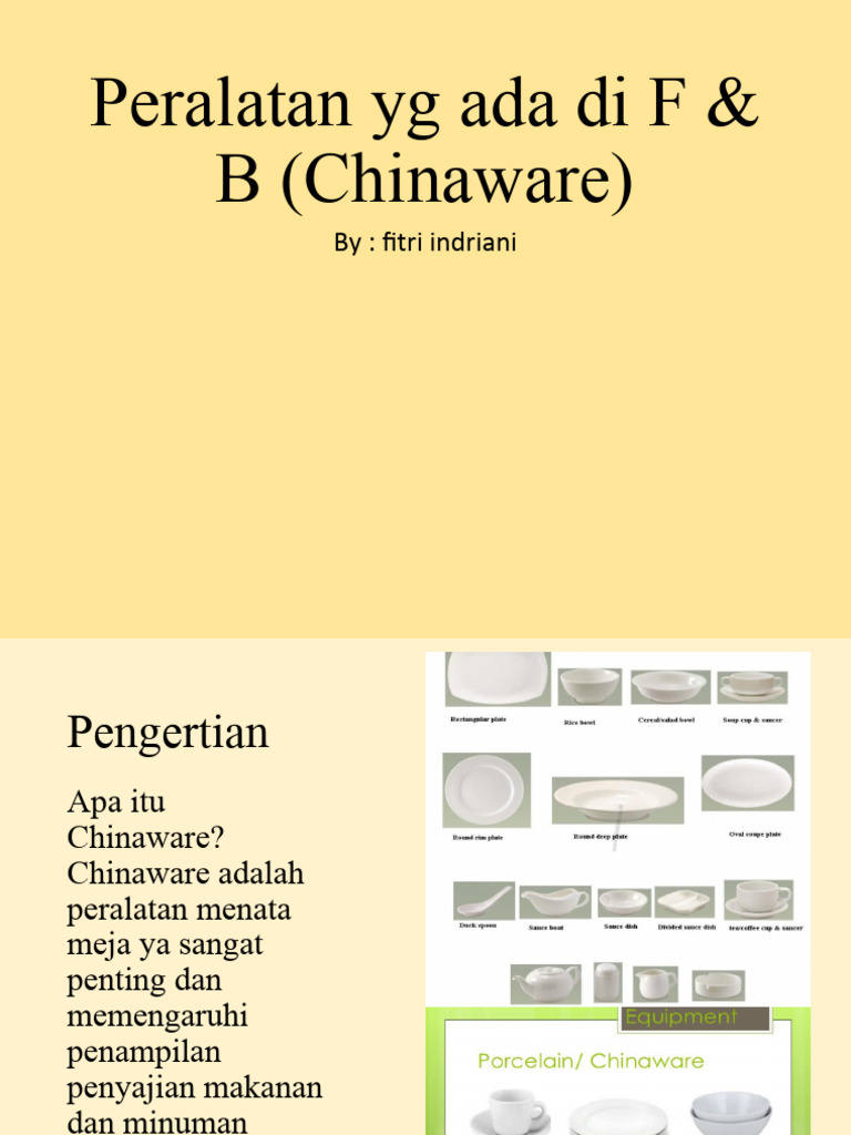 Cups, adalah peralatan makan hotel yang terdiri dari banyak macam jenis