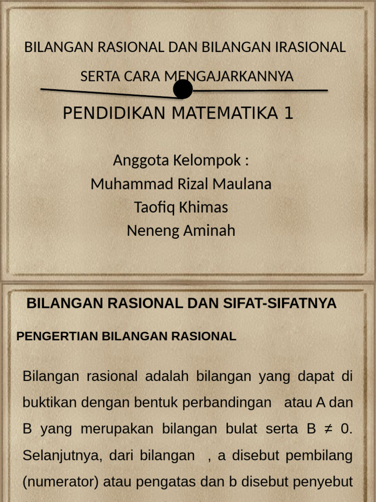 BILANGAN RASIONAL DAN BILANGAN IRASIONAL